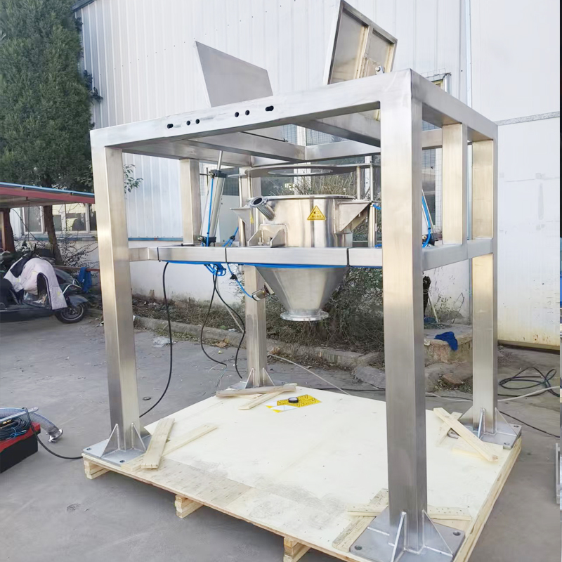 吊裝定位:通過叉車或電動葫蘆將噸袋提升至進料口,利用夾袋裝置固定袋口,確保噸袋與設備密封對接。