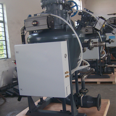 在進料過程中,物料通過專用進料閥進入發(fā)送罐中。發(fā)送罐內(nèi)的氣體通過平衡閥釋放出去,便于進料,同時消除了阻礙物料流動的反向壓力。一旦發(fā)送罐被裝滿,由料位計、電接點壓力表或者稱重傳感器發(fā)出信號,專進料閥和排氣閥關閉并且密封。然后往發(fā)送罐內(nèi)通入壓縮氣體,當達到一定值時,出料閥自動開啟,發(fā)送罐內(nèi)的壓縮氣體與物料相混合,同時向輸送管線施壓。物料以分立的組塊形式開始輸送,直到發(fā)送罐和輸送管線內(nèi)的物料排空為止。